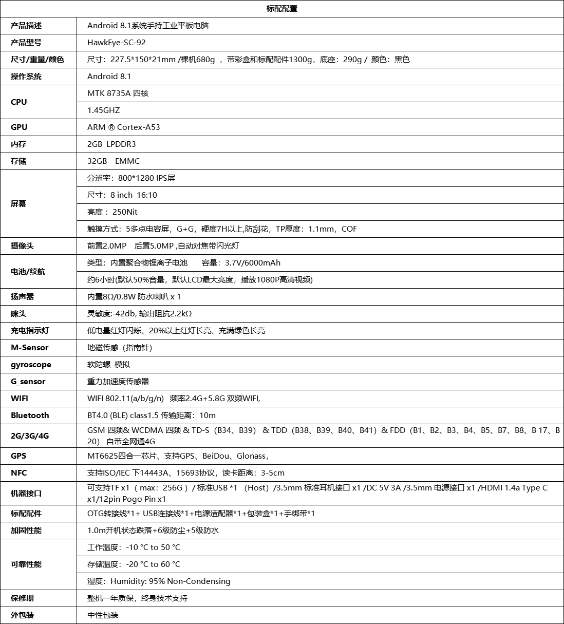 HawkEye-SC-92工业手持平板电脑